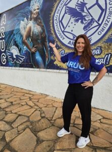 “Comecei como apoio à Rainha da Bateria da época, minha amiga Gabi (Gabriela Lima). Aqui, recebi o apoio de Vareta (Wellington Campos), que tristemente nos deixou em 2025. Também conheci o Mestre Léo e me senti em casa. Em 2023, já vestia a camiseta da bateria e fui convidada para desfilar, num Carnaval que foi realizado em 24 de Junho, Dia de São João”.