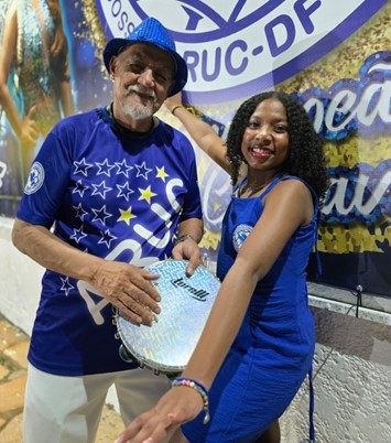 Chula, com Verônica Nunes Amaral, Rainha da Bateria da Aruc, promovendo intercâmbio entre gerações e música em tempo integral